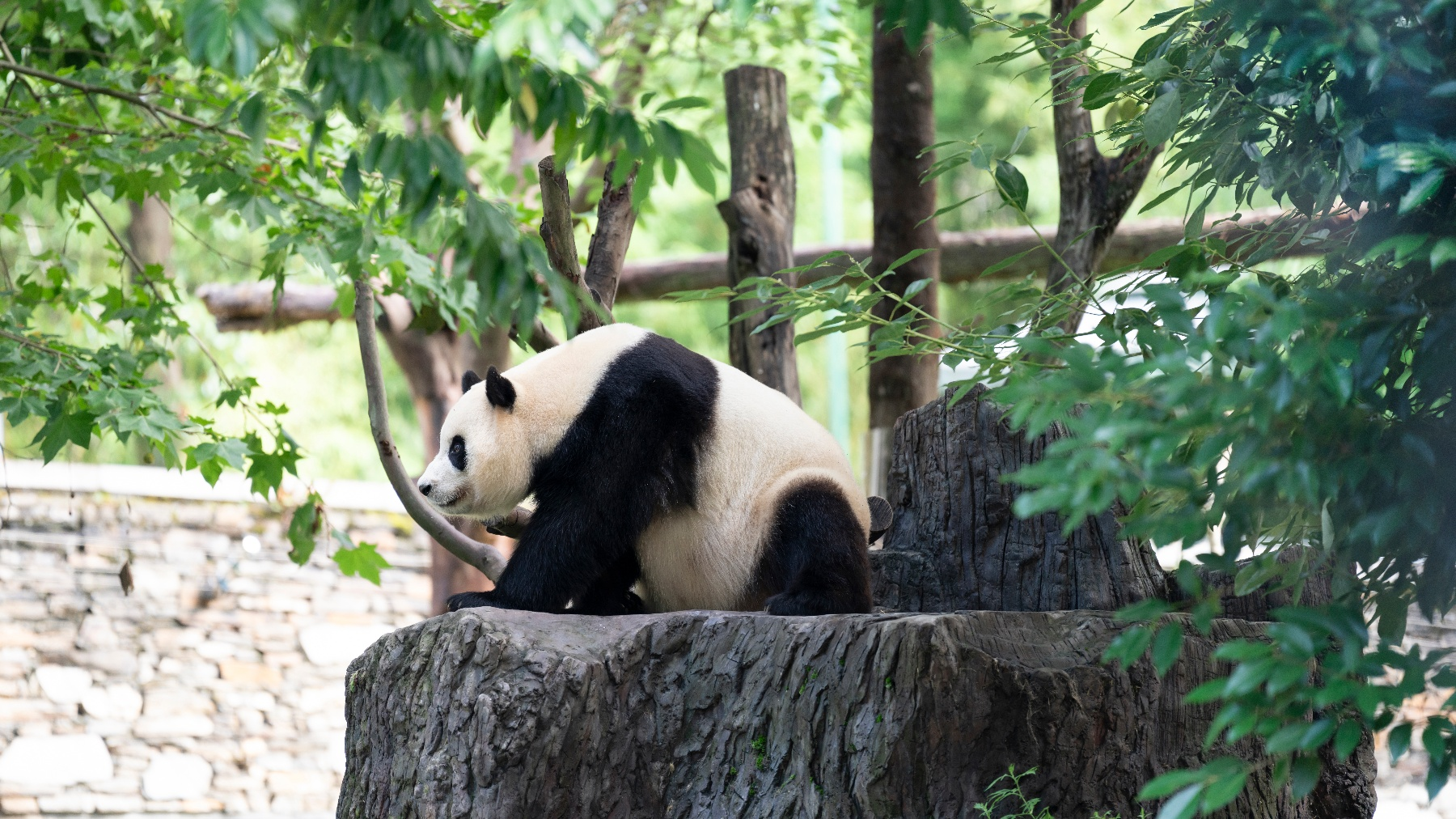 This photo, taken by Panda365 on September 8, 2025, shows Fu Bao, a giant panda returned from South Korea, standing on a rockery and looking into the distance at the Shenshuping Base of the China Conservation and Research Center for the Giant Panda in Wolong, Sichuan. (FuBao)
