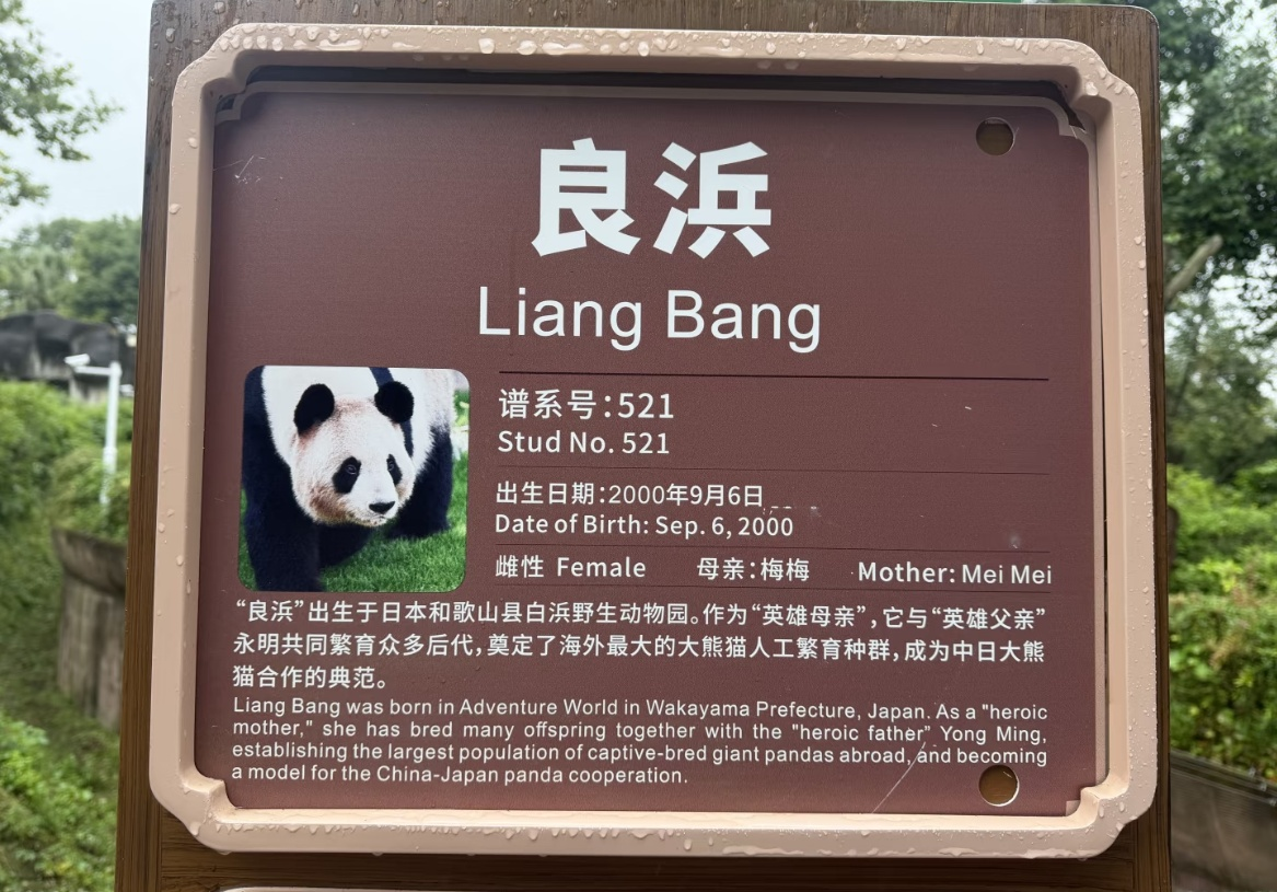 Liang Bang (Rauhin), a giant panda hailed as a “hero mother” upon her return from Japan’s Wakayama prefecture, went on public display at the Chengdu Panda Base on October 23, 2025, according to media reports. (LiangBang)